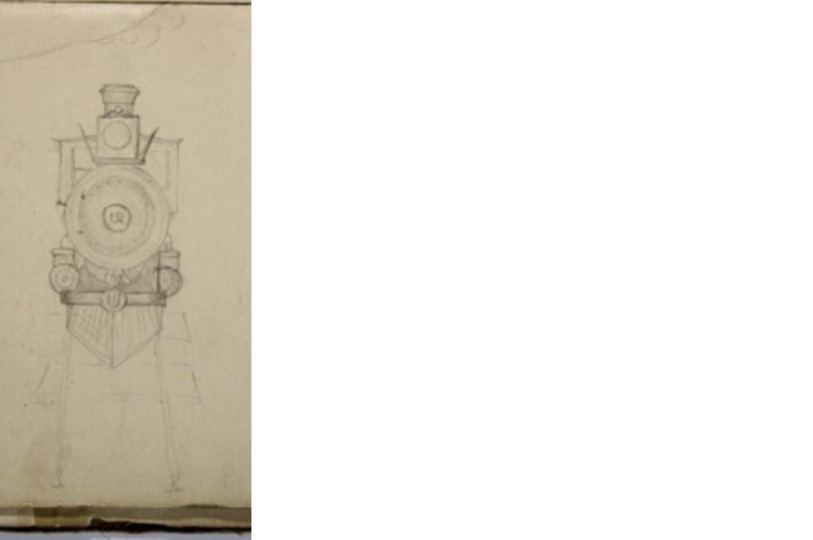 Mathematical annotations are one thing – but what sets this working booklet apart is two pencil sketches at the back: an approaching no.21 steam engine train (Image 3) and the side of the no.101 train (Image 4).