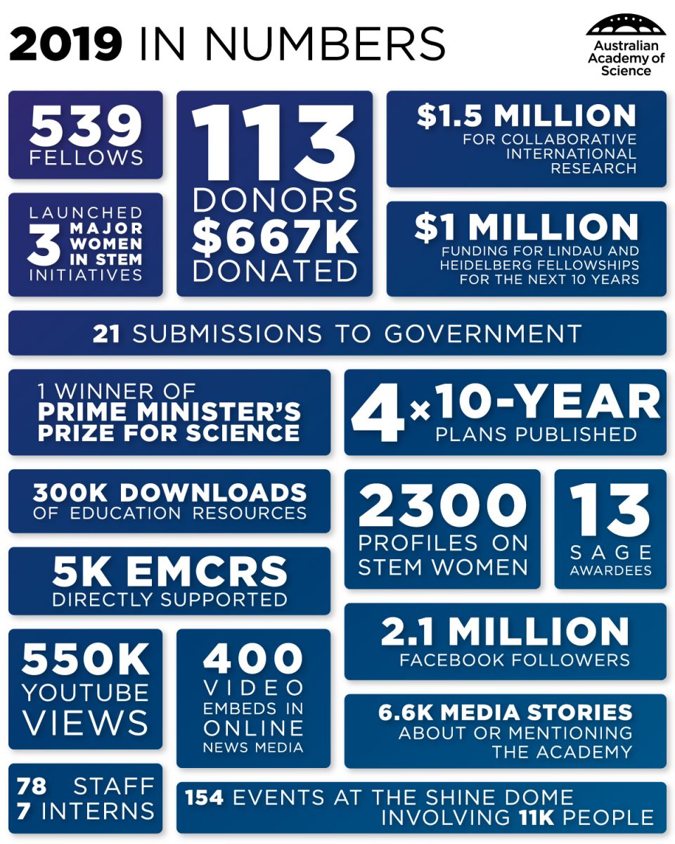 The Australian Academy of Science 2019 Annual Report covers 1 January to 31 December 2019.