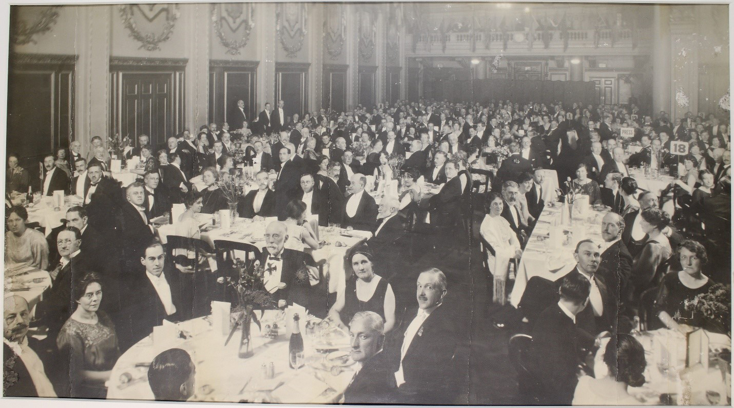The Academy’s heritage-listed building, the Shine Dome, is the home of the Fenner Archives where the Academy continues to preserve and safeguard the history of Australian science through digitisation and public access. Sometimes, however, we need to solve a puzzle before stories can be shared. One such intriguing case is a century-old photograph titled, ‘The Physical Society of London – Golden Jubilee Banquet 22 March 1924’ which hangs in the Fenner Room of the Shine Dome. Its connection to Australia’s scientific story was a mystery to us until recently.