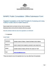 On 11 February 2015, the National Committee for Data in Science made the following submission on the National Health and Medical Research Council (NHMRC)'s targeted consultation on the draft principles for accessing and using publicly funded data for health research.