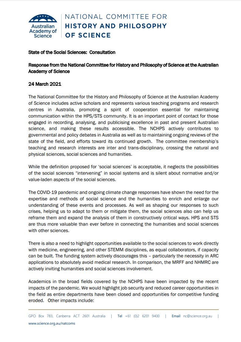 On 24 March 2021, the Academy’s National Committees for History and Philosophy of Science and for Data in Science made submissions to the Academy of Social Science in Australia’s State of the Social Sciences consultation.